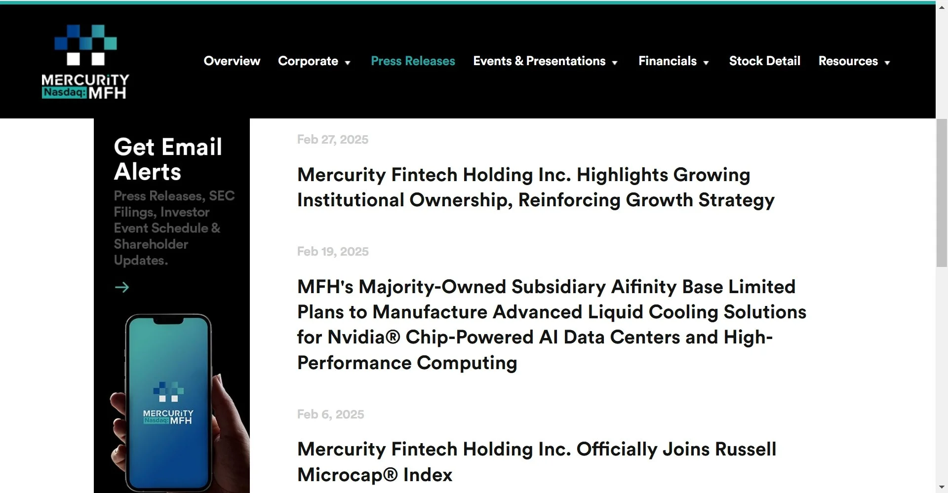 Mercurity Fintech Holding Inc. (Nasdaq: MFH)
